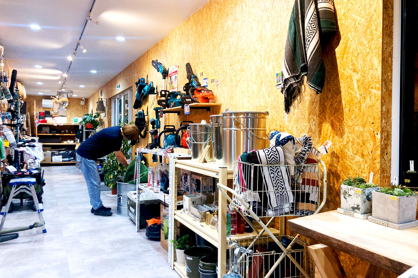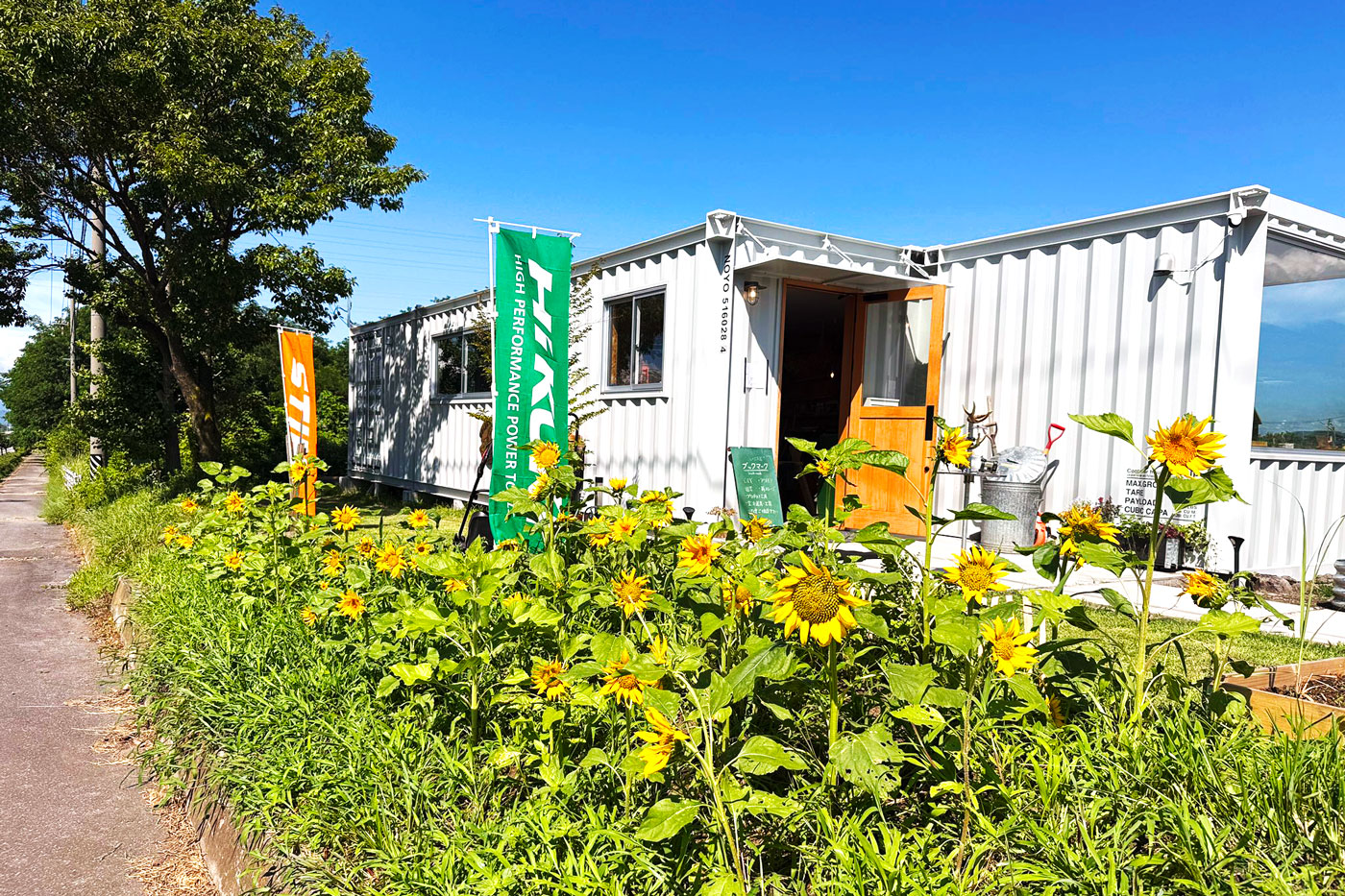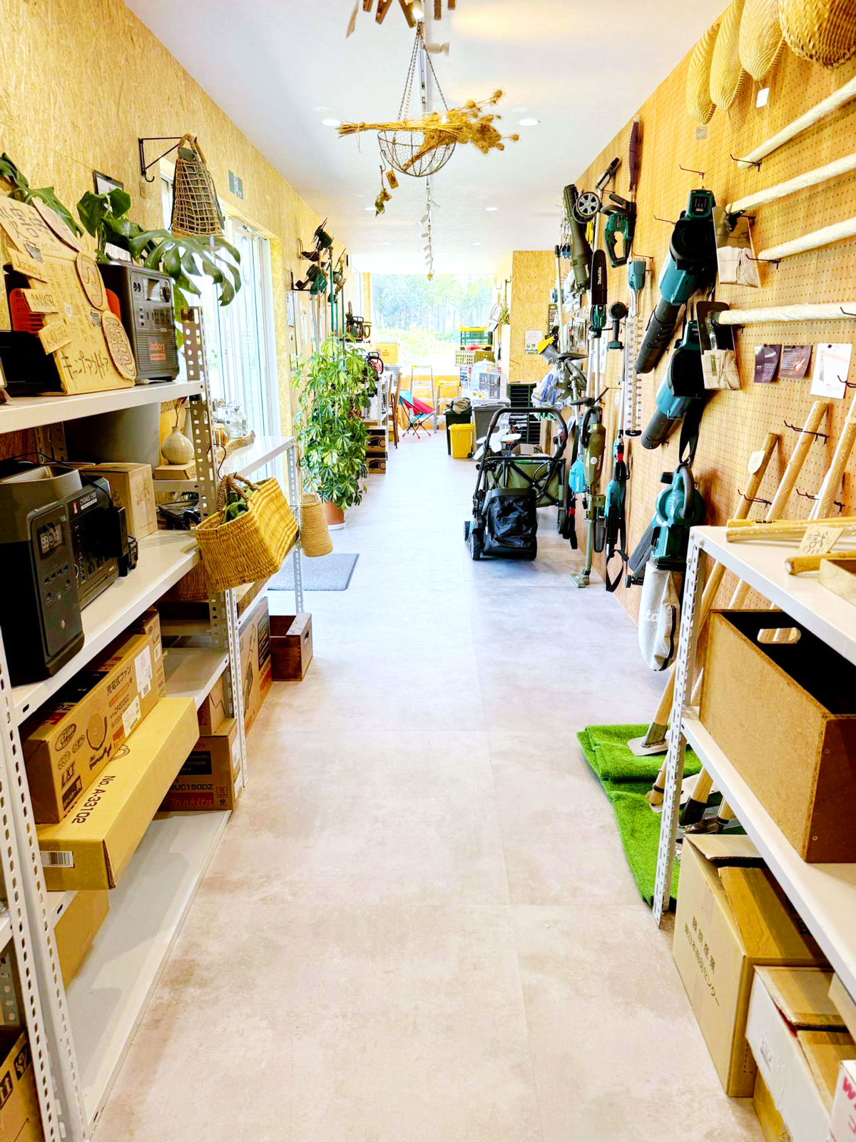 コンテナハウスを店舗に用いるメリットの一つが、空間のスケールを上手く設定できることです。大型店舗にはない「店主の目が行き届く距離感」や、「商品との距離の近さ」が生まれ、来店者は落ち着いて道具を選ぶことができます。
