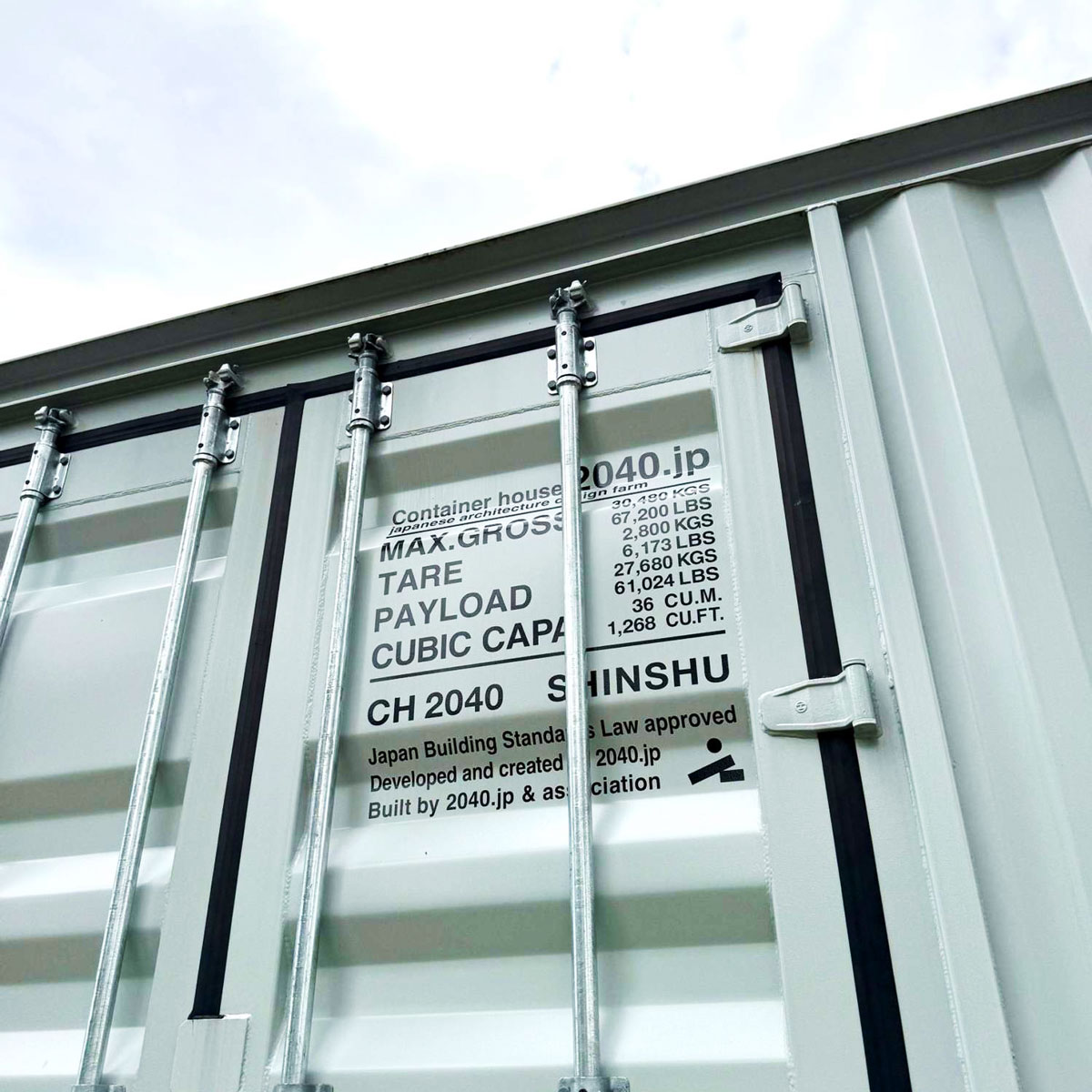 福岡県大野城市にあるバイクショップ「SPACE MOTOR COMPANY」。コンテナハウスを利用した2階建ての店舗です。