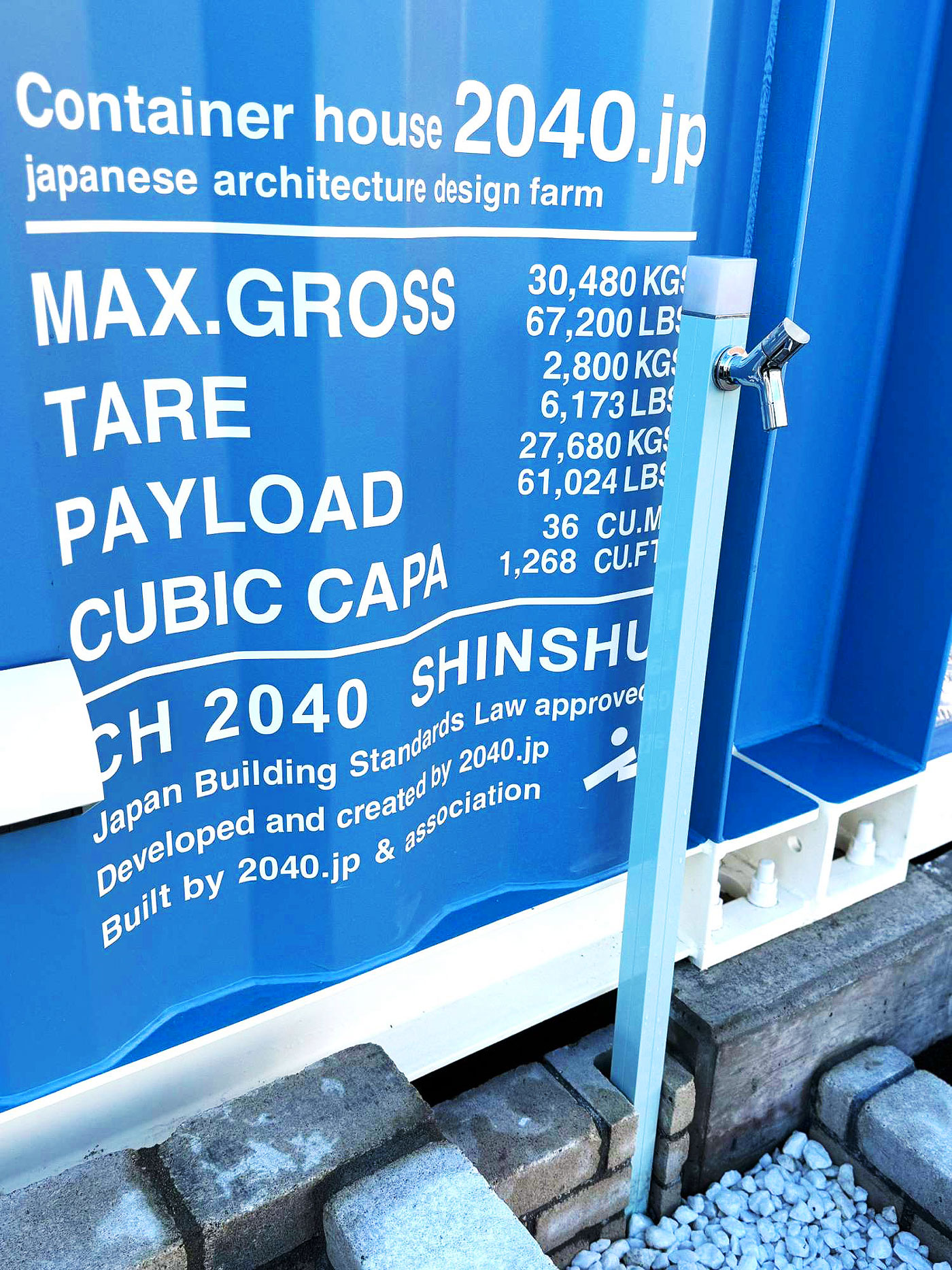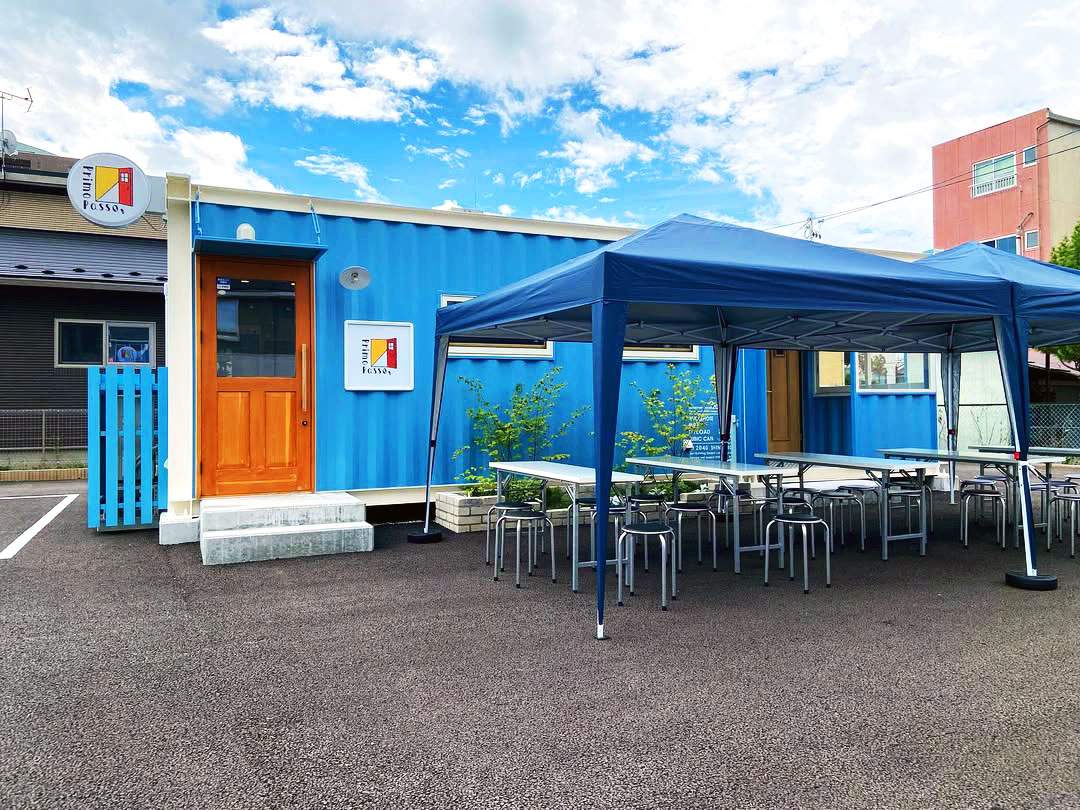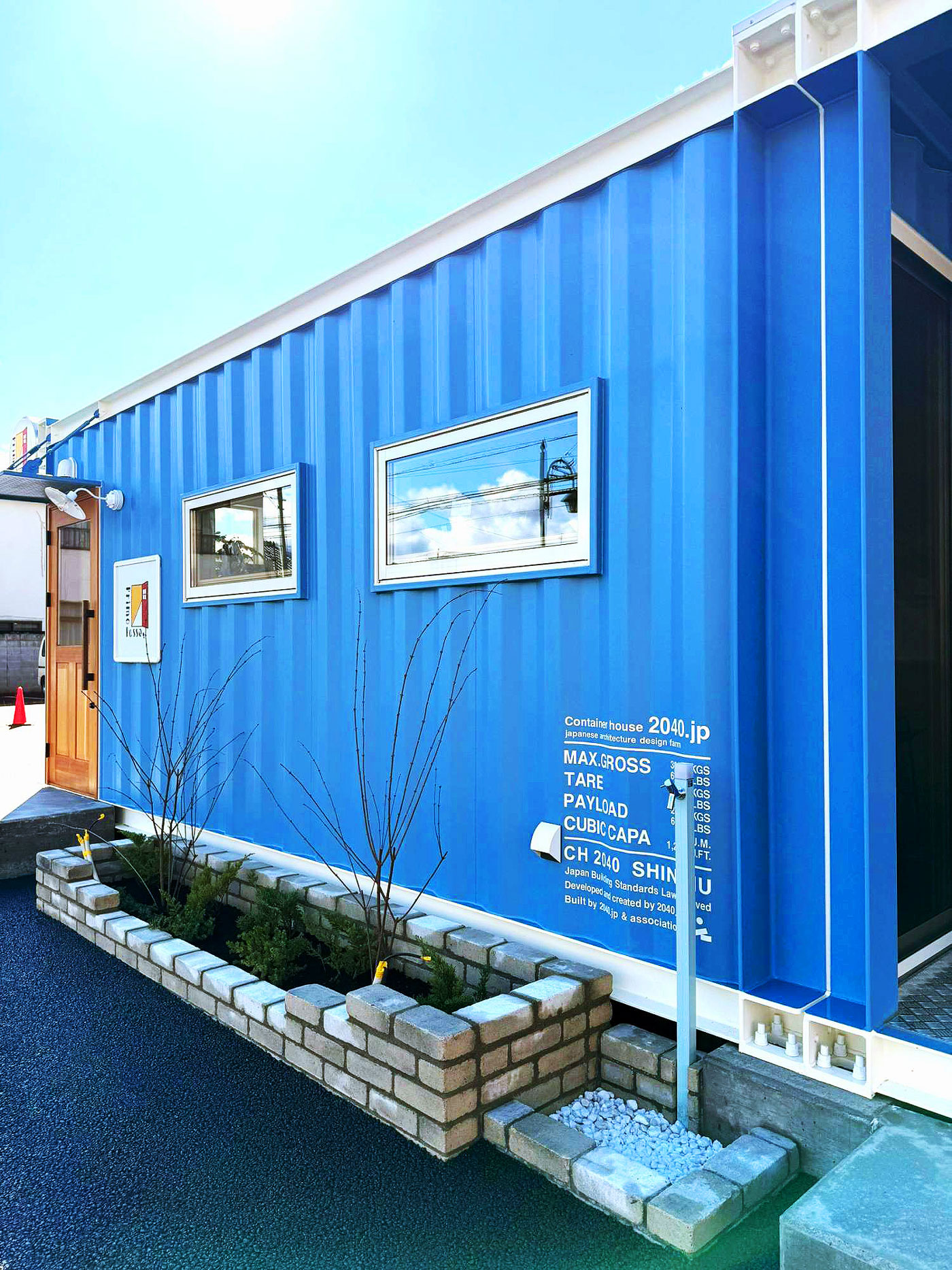店舗として40フィートハイキューブコンテナ(12.192m×2.438m×2.896m)と20フィートハイキューブコンテナ(6.058m×2.438m×2.896m)を2台ずつ利用しています。