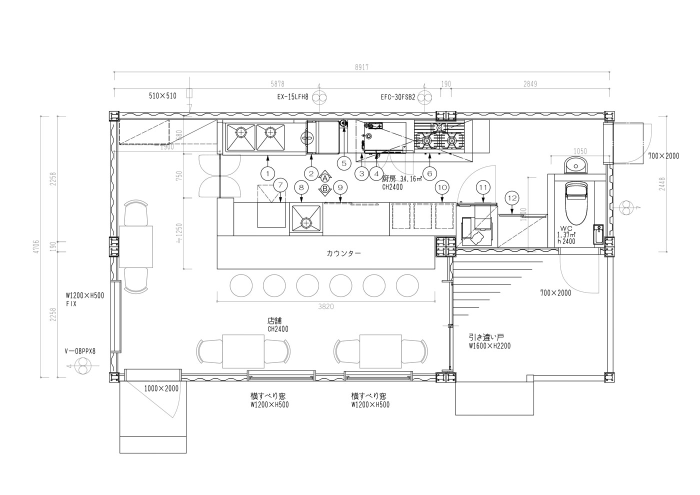 様々な飲食店を訪ね、カウンターの最適なサイズを探求。コンテナの設置からオープンまで約2カ月。短い工期が魅力です。