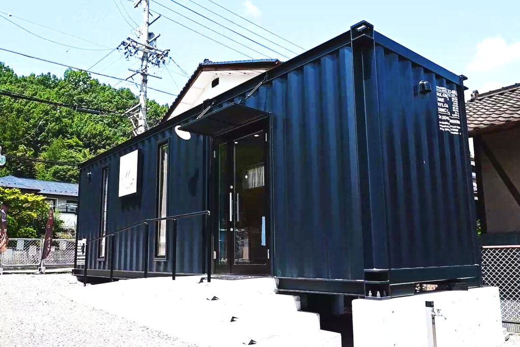 長野県上田市にある建築用コンテナハウスを利用したシェアキッチンです。業務用キッチンとイートインスペースを併設しています。